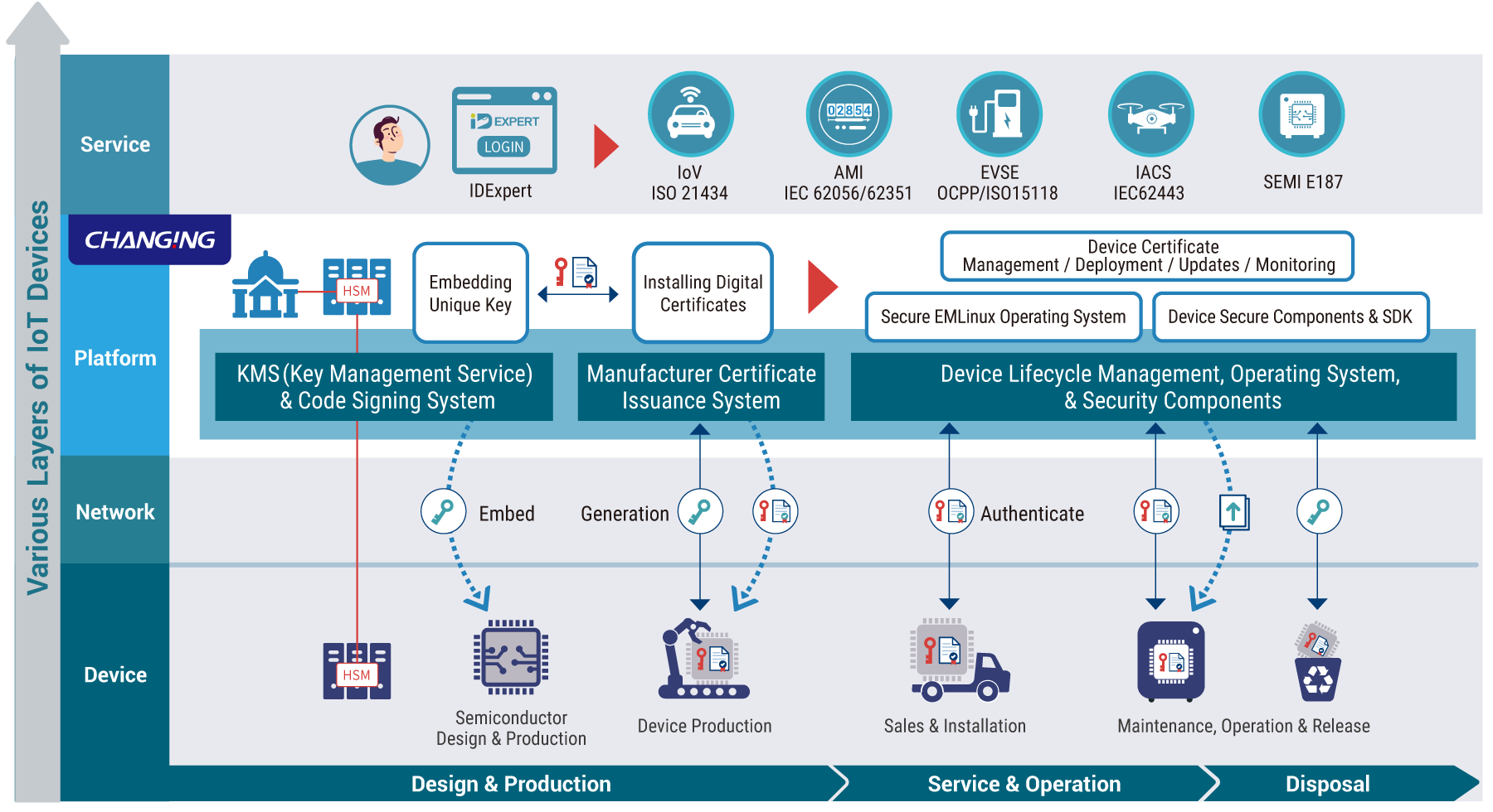 Secure and reliable management of software certificates and encryption keys at every stage, from chip design and manufacturing to deployment and ongoing device operation.