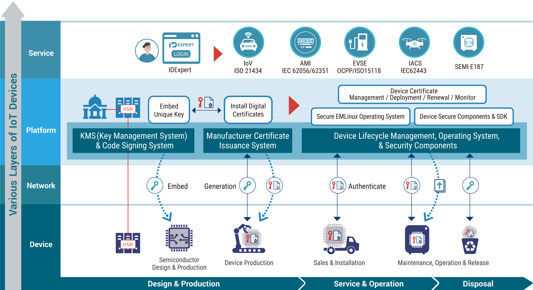 We provide multilayer security assurance including root of trust on chip, key management, certificate management, and IoT security service. It involves the whole lifecycle of IoT devices from design phase to production and operation phase.