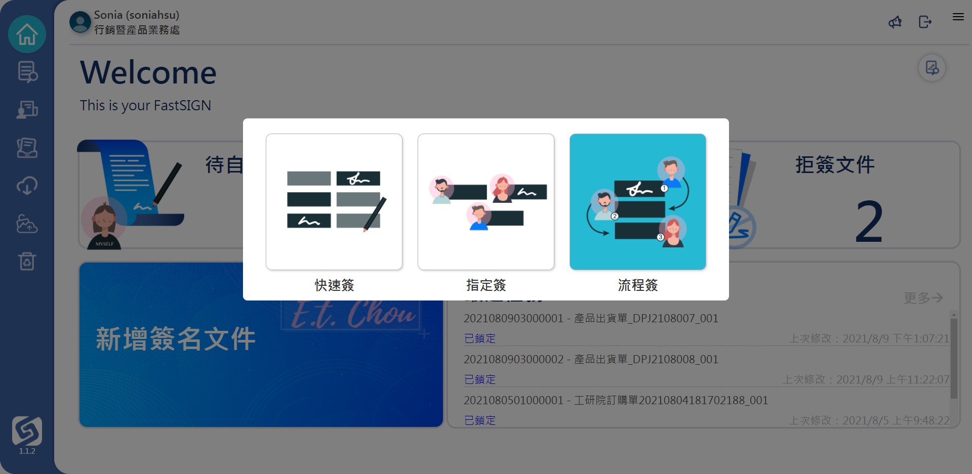 ● 選擇需要建立簽名的文件