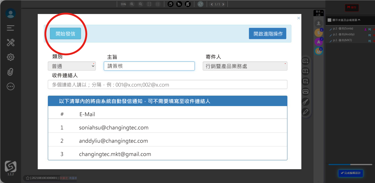 ● 選擇右列的人員,再點擊其簽名欄位,依此類推