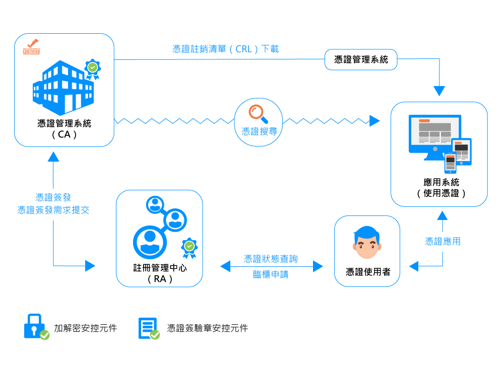 提供憑證使用者申請、廢止、展期、更新等服務需求。